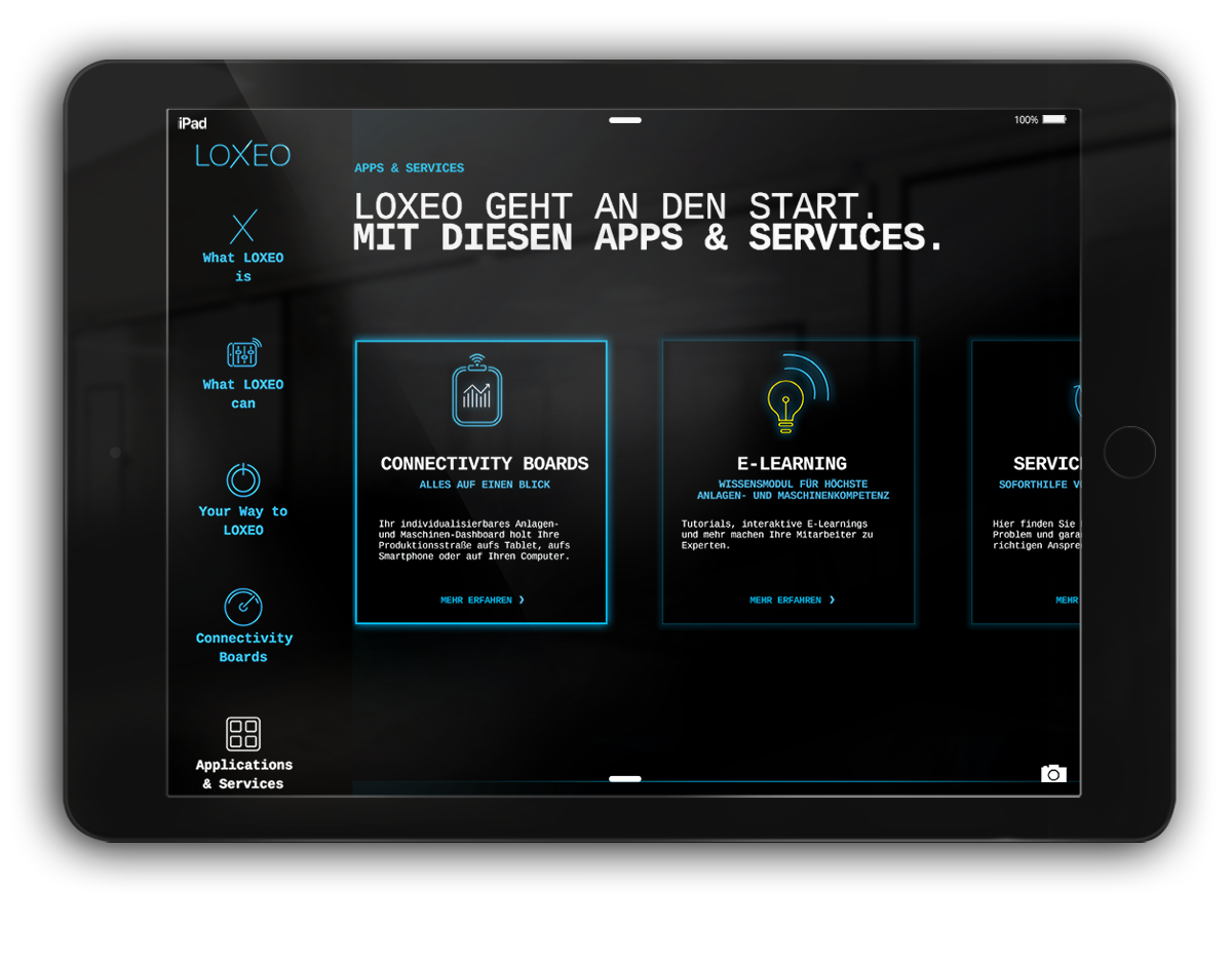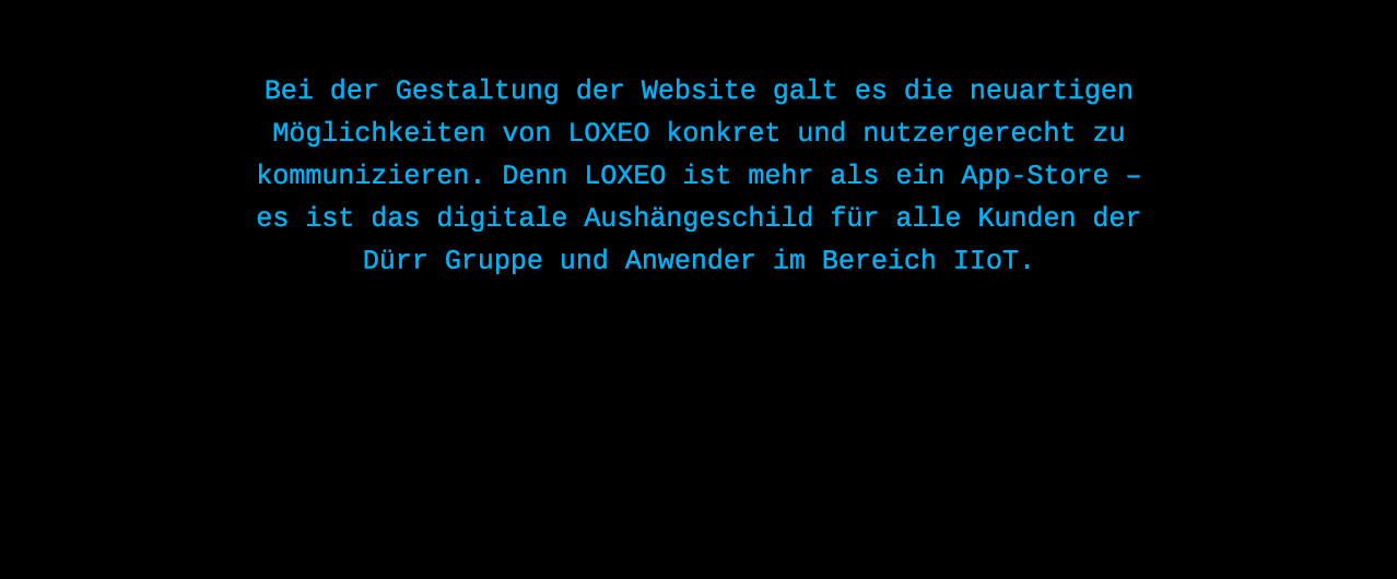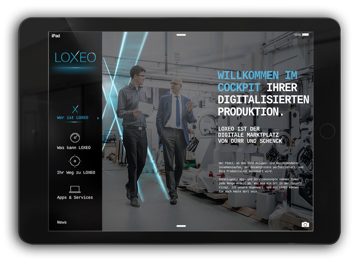 Die Dürr Group zählt zu den weltweit führenden Maschinen- und Anlagenbauern. Die Gruppe setzt dabei seit 20 Jahren wesentliche Akzente in der Digitalisierung der Branche. Der Anspruch: mit einer IIoT-Plattform neue Standards setzen. Die Performance: einem Weltmarktführer entsprechend. BrainFactory Mission: Namensentwicklung, Aufbau des Brandings, Website-Relaunch, Entwicklung einer einzigartigen und unverwechselbaren Visualwelt, UX Design der LOXEO App.
