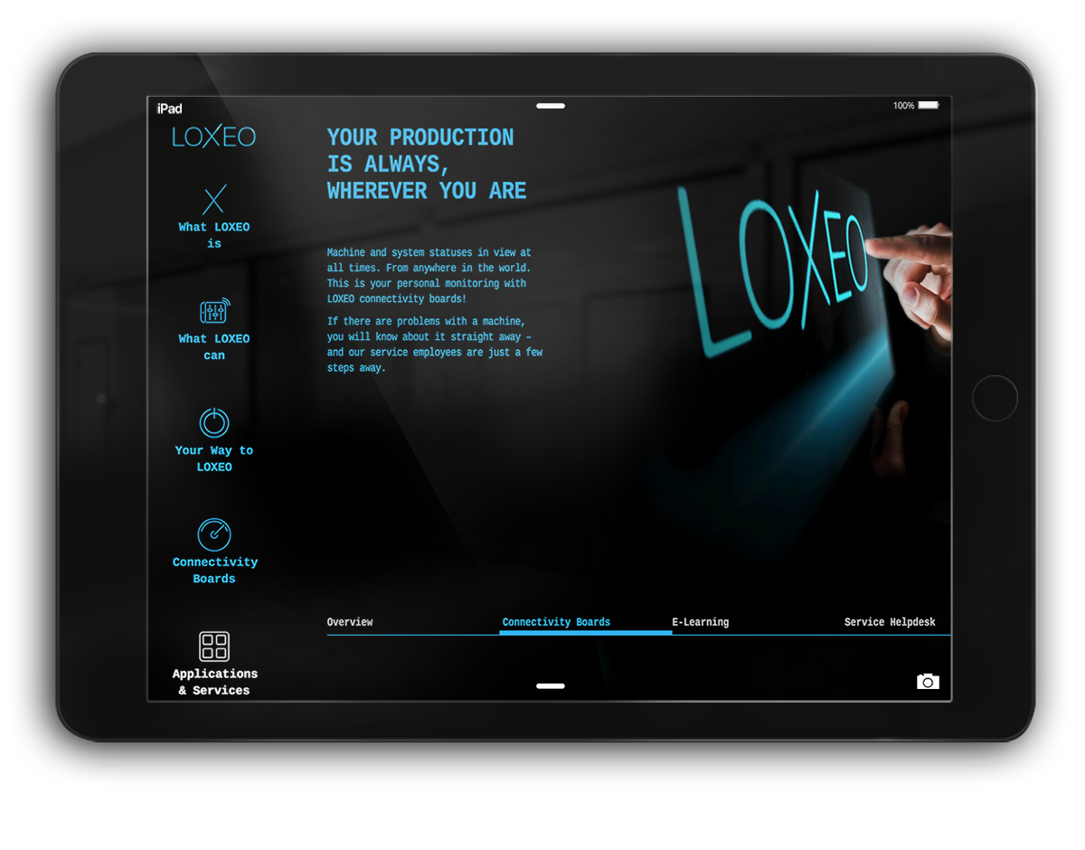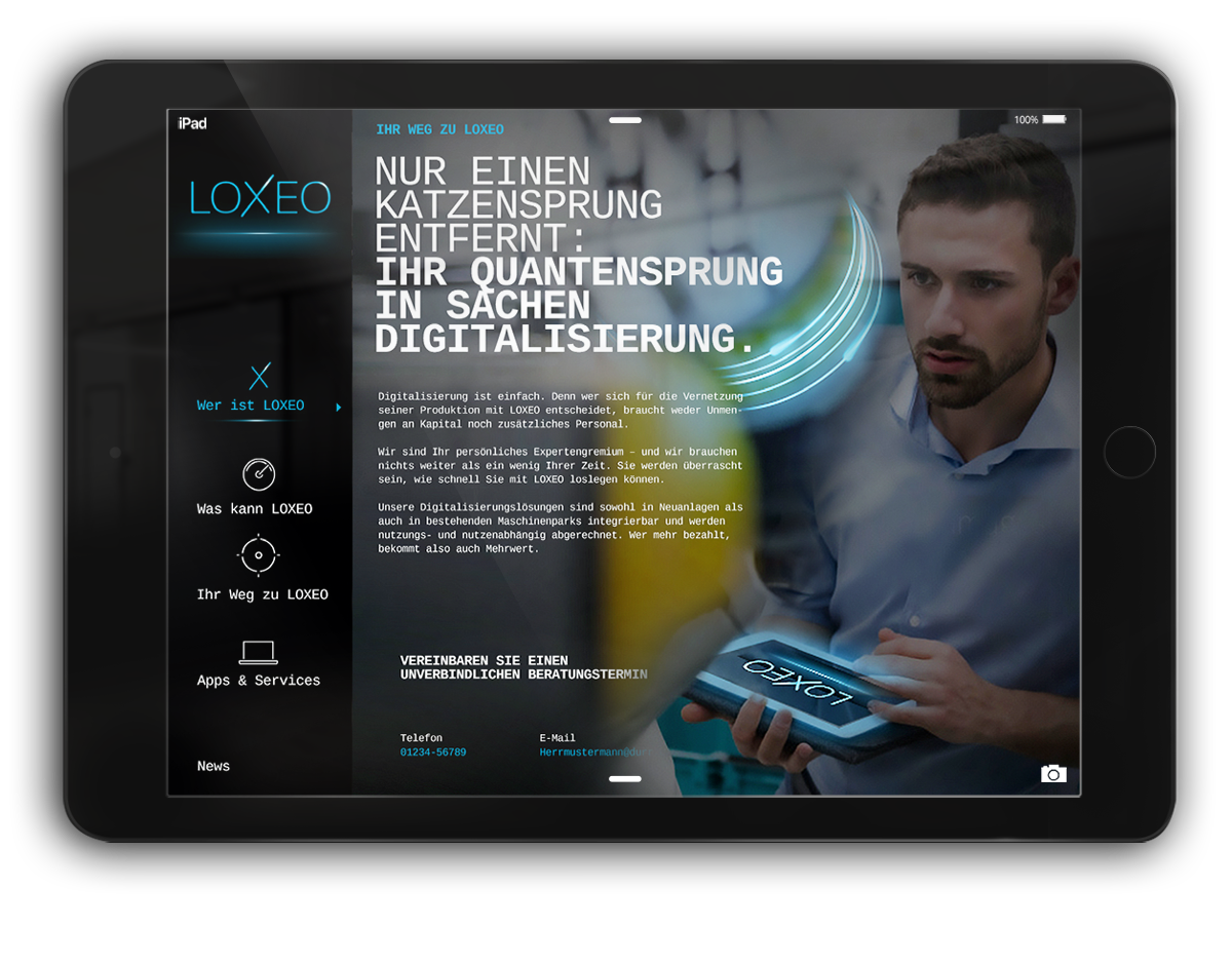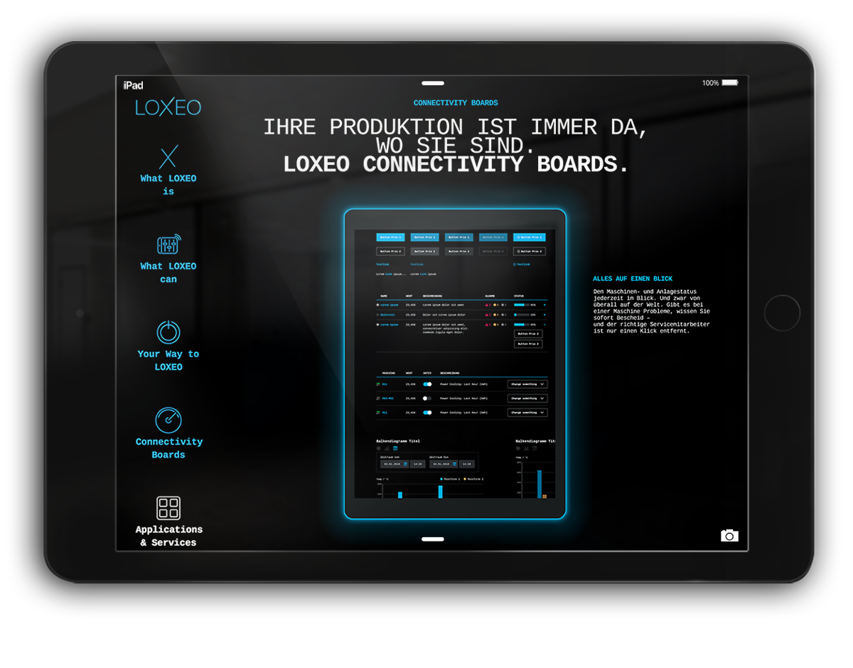 Die Dürr Group zählt zu den weltweit führenden Maschinen- und Anlagenbauern. Die Gruppe setzt dabei seit 20 Jahren wesentliche Akzente in der Digitalisierung der Branche. Der Anspruch: mit einer IIoT-Plattform neue Standards setzen. Die Performance: einem Weltmarktführer entsprechend. BrainFactory Mission: Namensentwicklung, Aufbau des Brandings, Website-Relaunch, Entwicklung einer einzigartigen und unverwechselbaren Visualwelt, UX Design der LOXEO App.