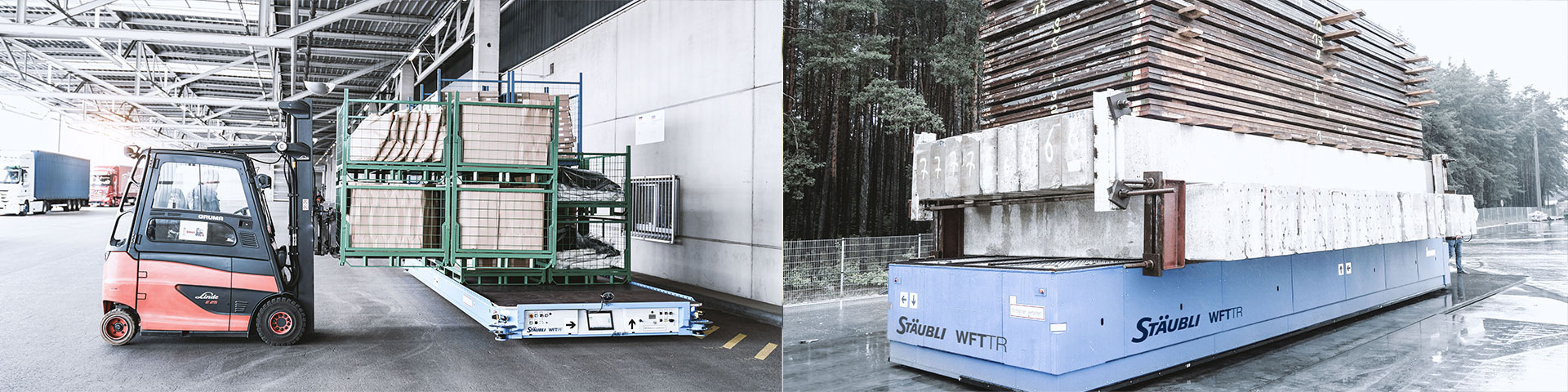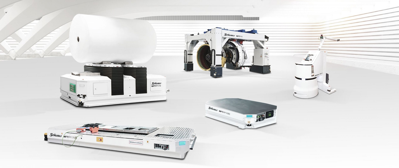 Am Markt gibt es bereits zahlreiche Anbieter von Automated Guided Vehicles (AGV) Anbieter. Die fahrerlosen Transportsysteme von Stäubli WFT sind jedoch speziell für schwerste Lasten ausgelegt und dabei extrem beweglich. Zusammen mit dem Know-how von Stäubli Robotics ergibt sich so eine unschlagbar zukunftsweisende Verbindung – mit bis ins Detail durchdachten Konzepten, um die technischen Herausforderungen in der Intralogistik und Industrie zu meistern.